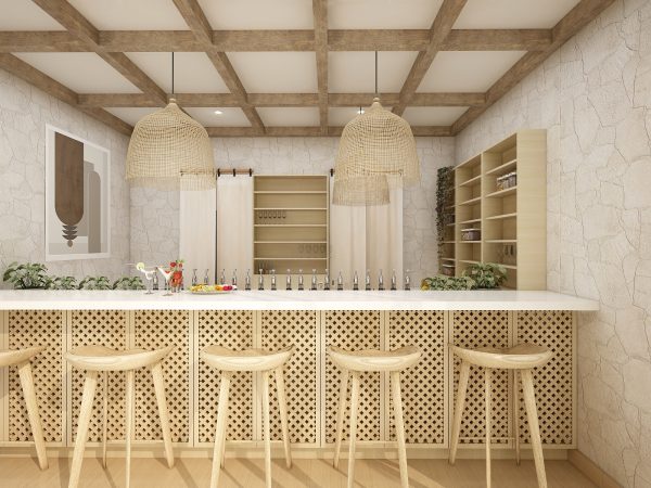Kitchen set ini mengadopsi gaya Boho Coastal dengan sentuhan tropis minimalis, menggabungkan elemen alami, tekstur anyaman, dan palet warna netral yang hangat. Perpaduan ini menciptakan suasana yang nyaman, terang, dan mengundang.